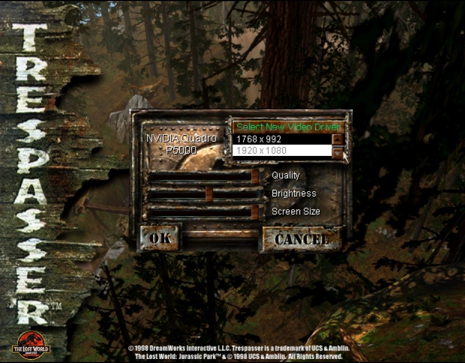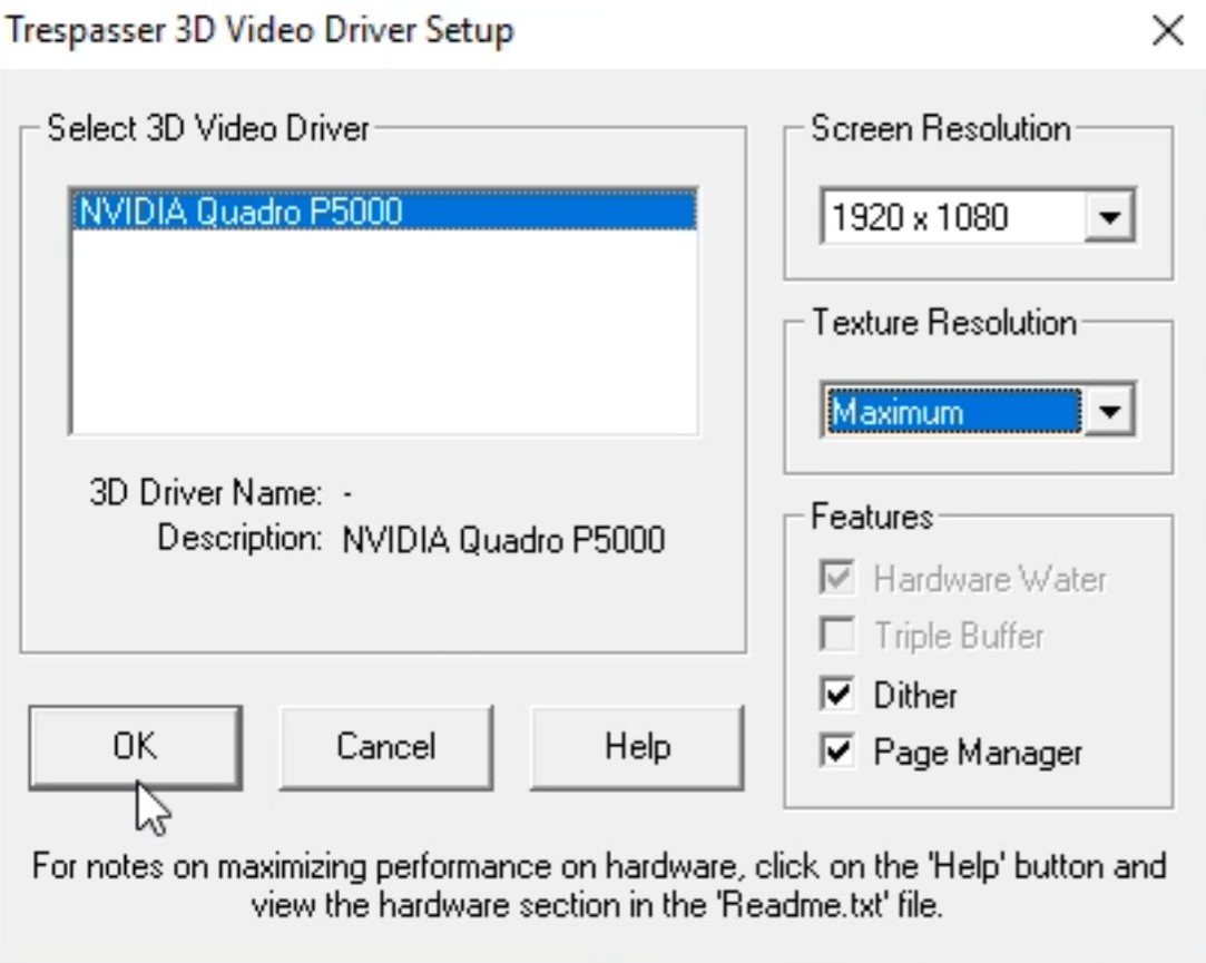 With the Trespasser Driver Setup too you can change your driver if required, adjust resoluton, and texture resolution.