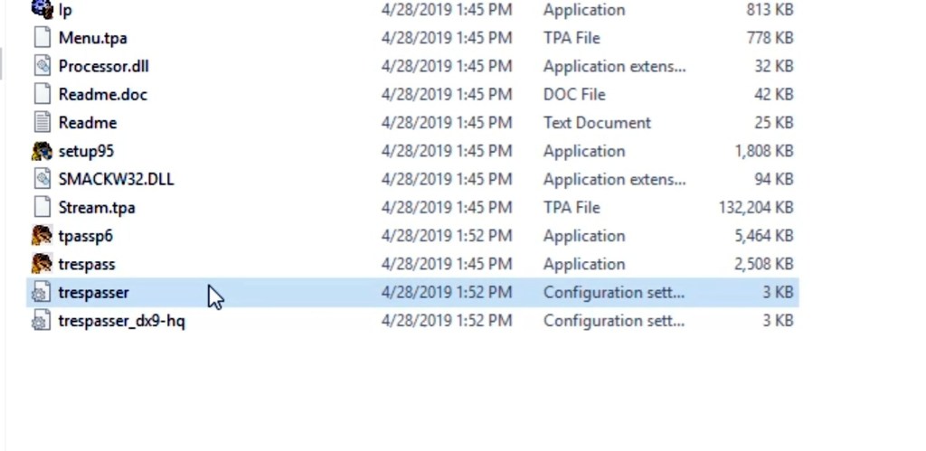 You will now have two config files in your Trespasser install folder. Delete the file named trespasser. Next rename trespasser_dx9-hq to trespasser.