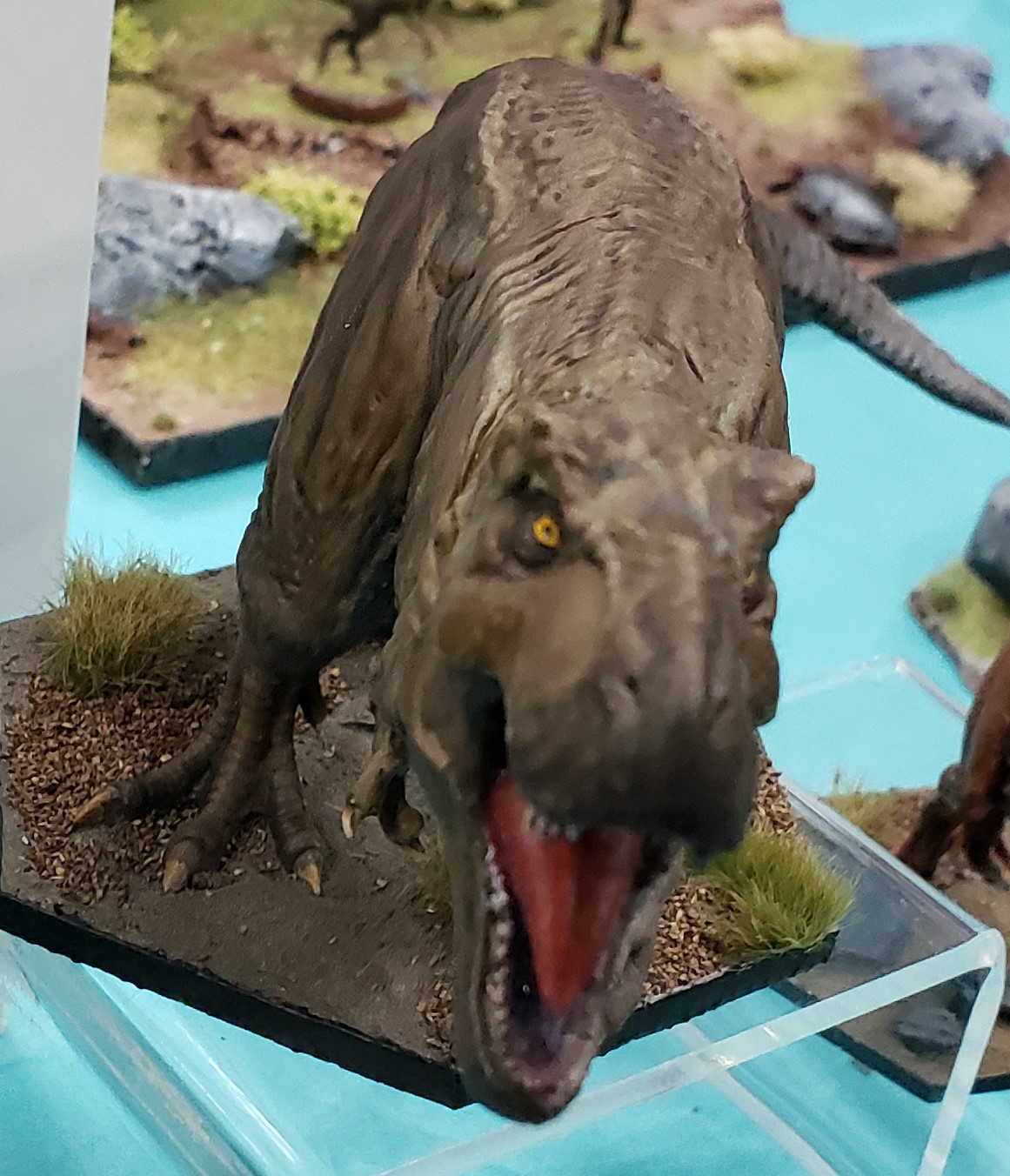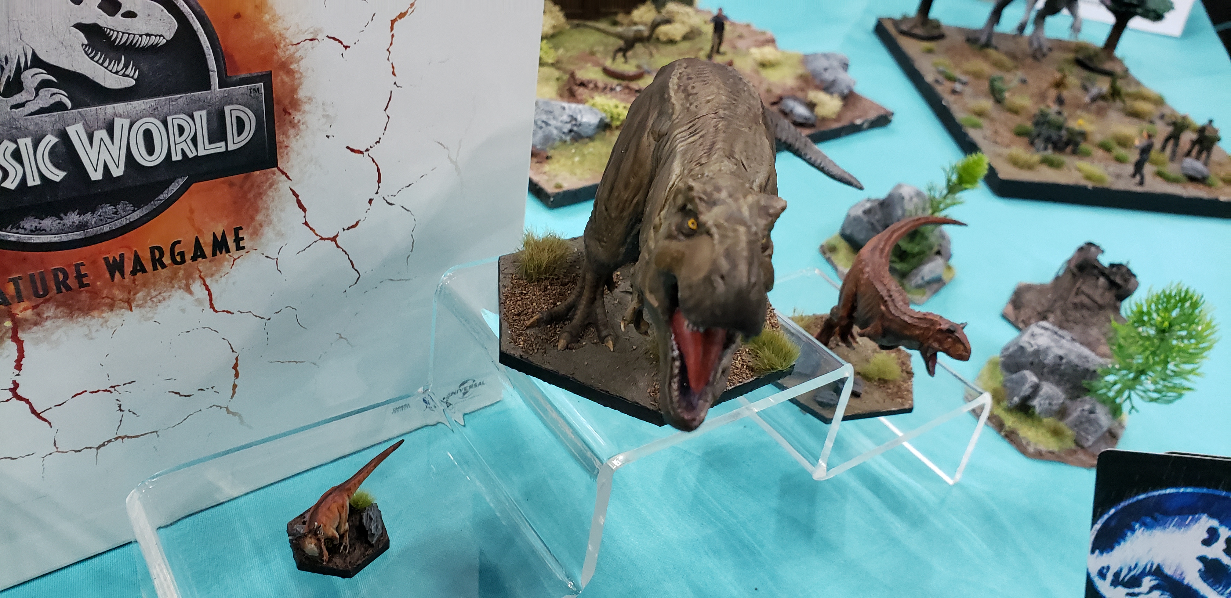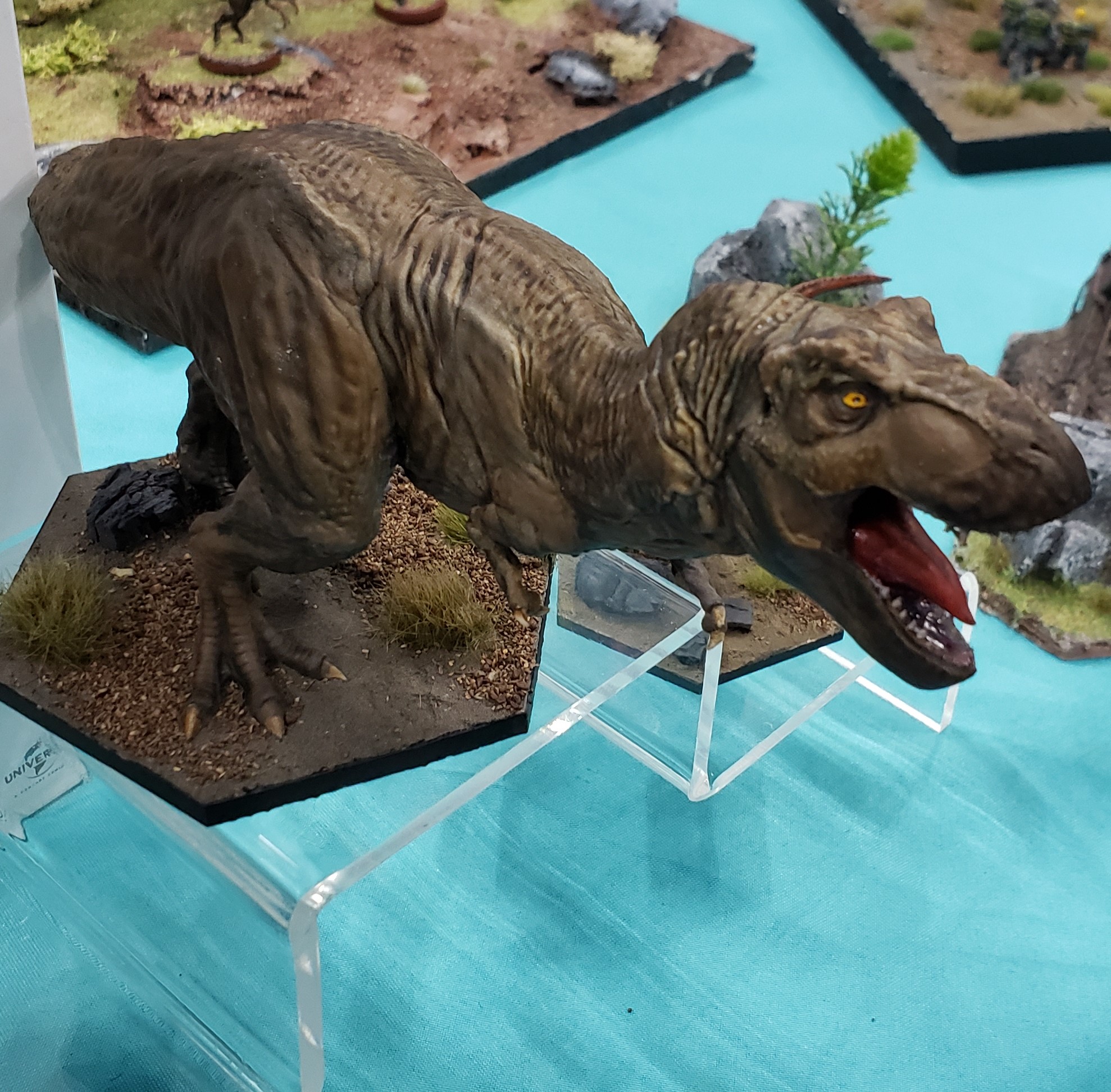 With the T-Rex all Exod had on display was their wonderfully painted model. I was hoping to see the character board in person as well as checking out the cards for the Rex to get an idea of how she would play, but alas that was not the case. The Rex game board was shown in the Kickstarter campaign so we do know her stats.