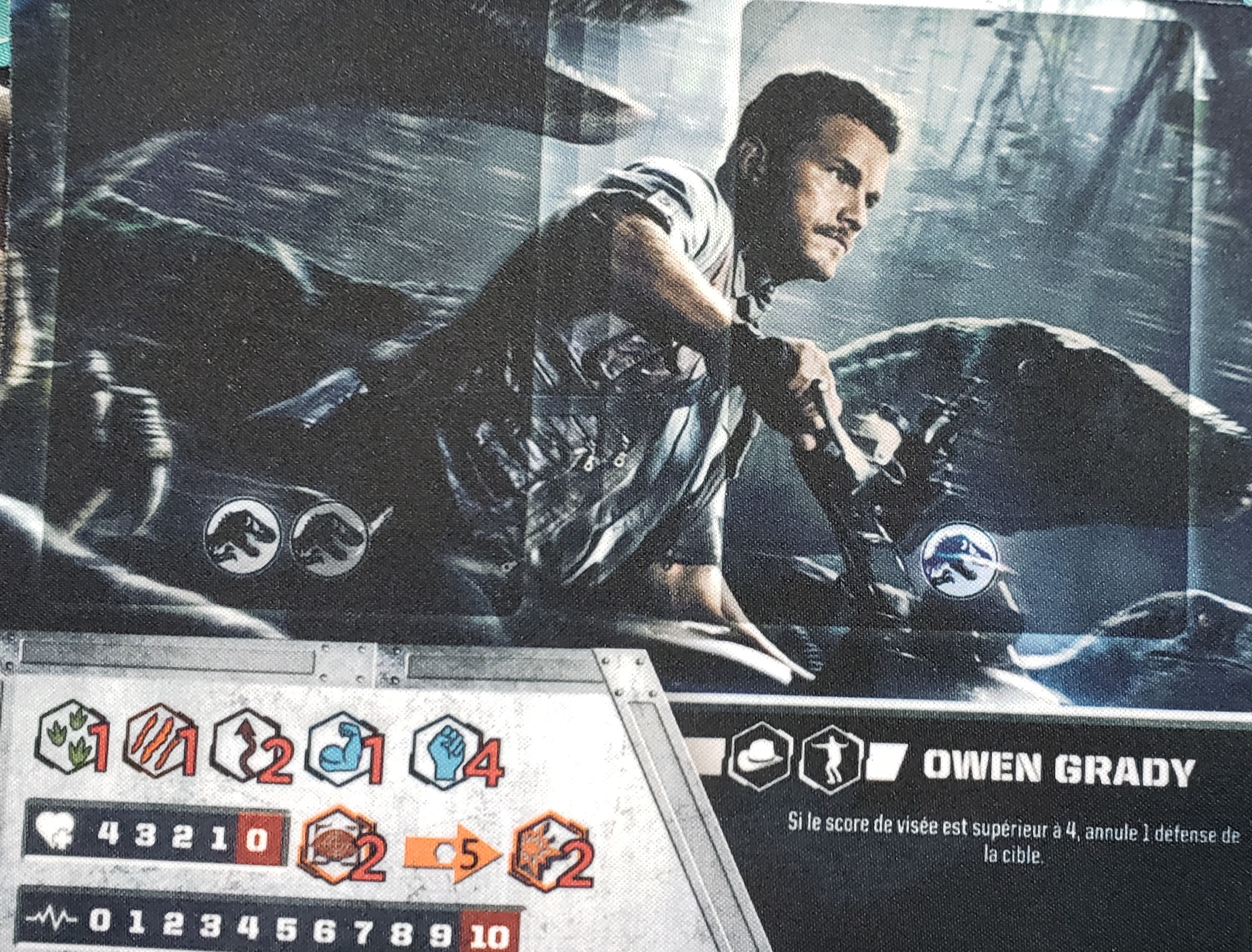 As was the trend for most of the characters, Owen didn’t have any cards available to look at. It will be interesting if he is able to give Blue and the other raptors commands. His game board features the Adventurers faction like Roland but also features a special icon.